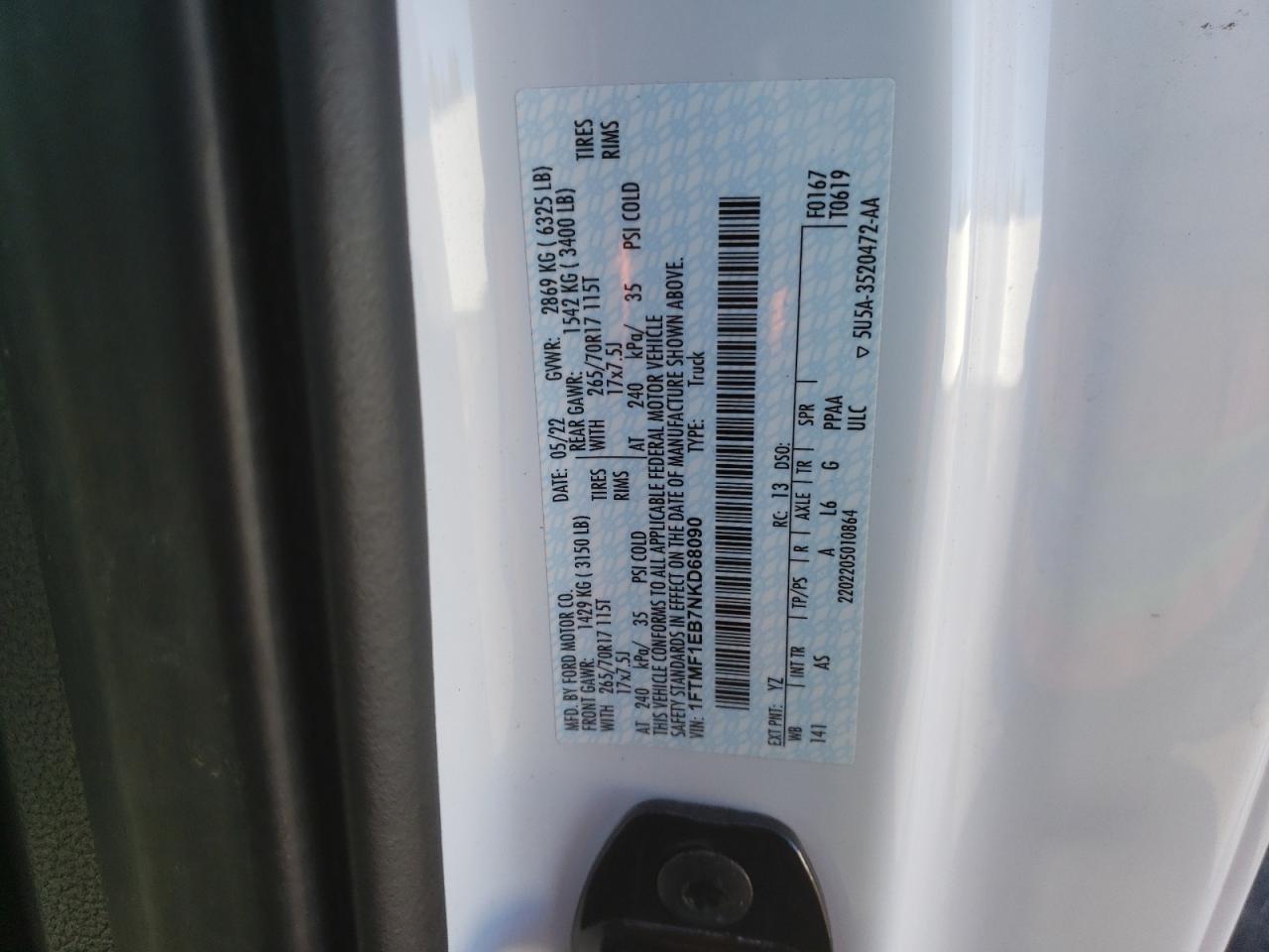 У нас вы можете заказать автомобиль Ford F-150 XIV 2022 года выпуска с пробегом миль, цвет белый, с двигателем 3.3l 6, коробкой передач автоматическая, привод - полный, топливо - бензин . Транспортное средство продается на аукционе и доступно для доставки в Беларусь, местонахождение ТС - Ct - Hartford, New Britain, Connecticut, США. Состояние - не заводится и не едет. Vin ТС - 1FTMF1EB7NKD68090.