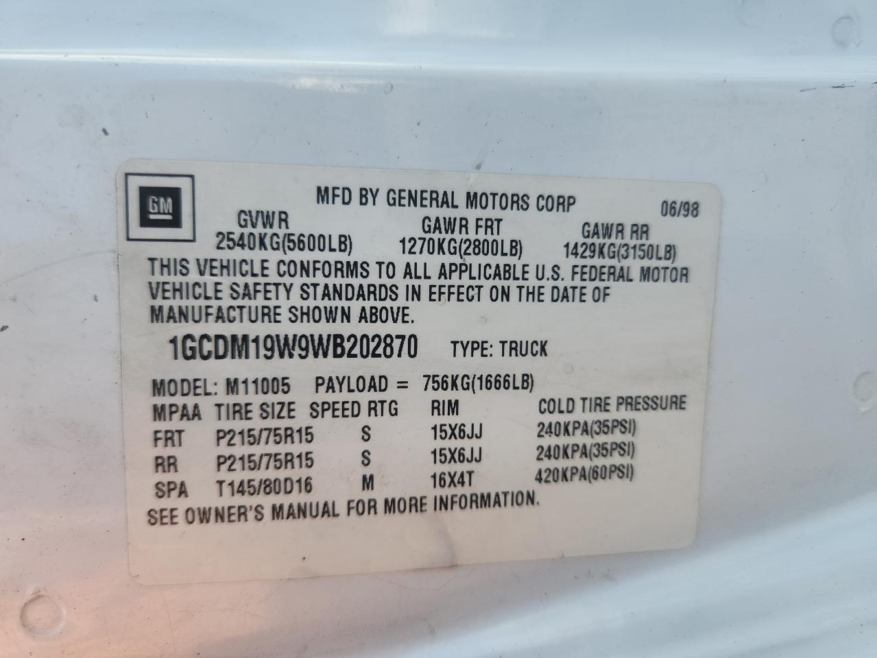 1GCDM19W9WB202870