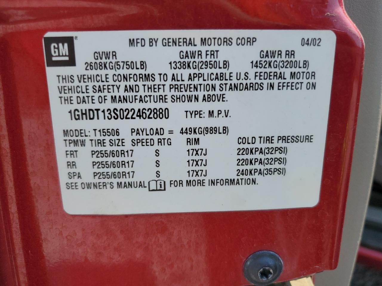 2002 Oldsmobile Bravada 1GHDT13S022462880