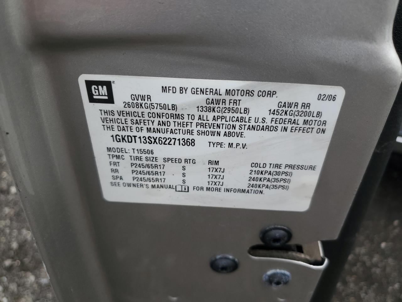 2006 GMC Envoy 1GKDT13SX62271368