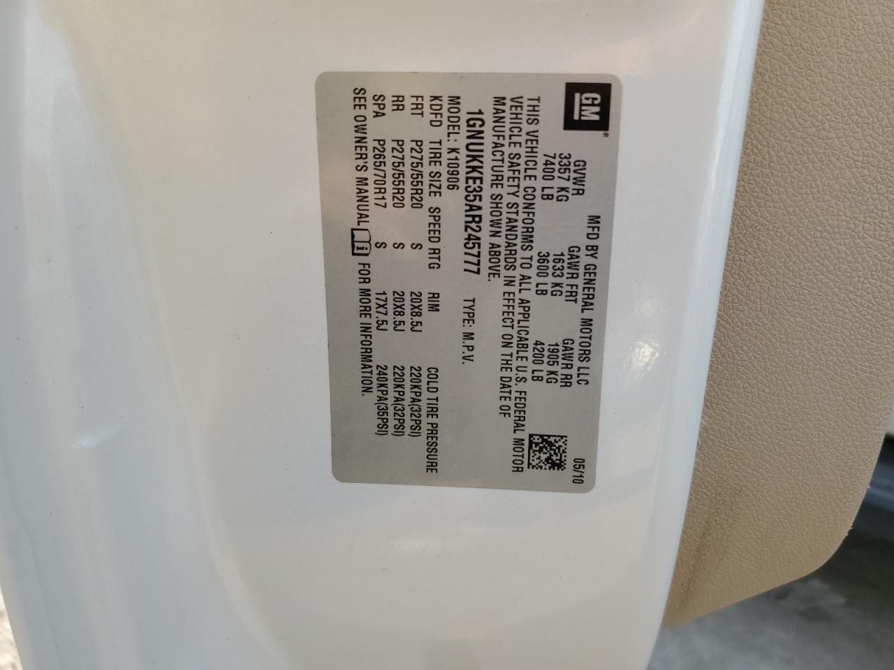 1GNUKKE35AR245777