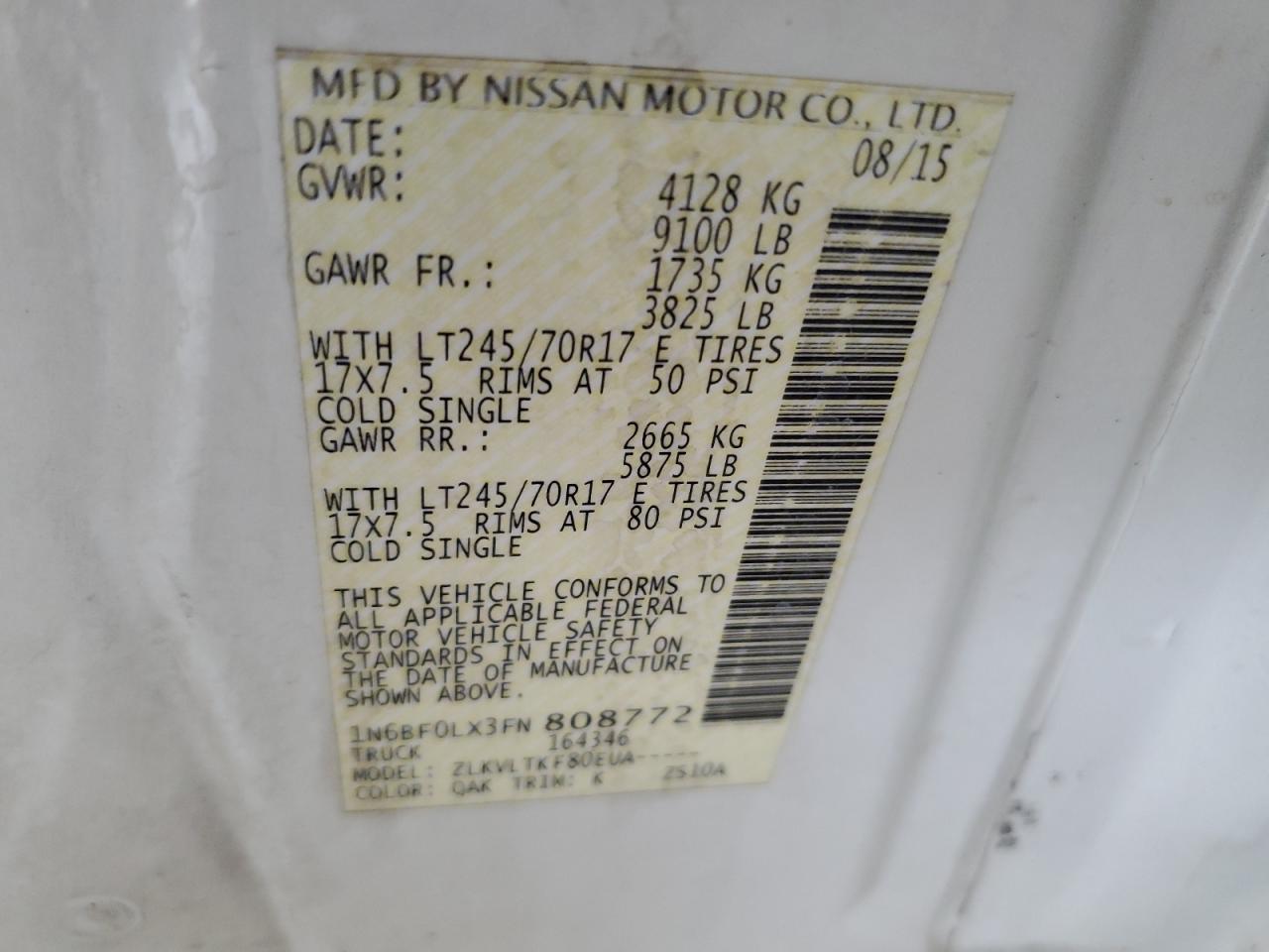 У нас вы можете заказать грузовики Nissan NV 2015 года выпуска с пробегом 259920 миль, цвет белый, с двигателем 4.0l 6, коробкой передач автоматическая, привод - задний, топливо - бензин . Транспортное средство продается на аукционе и доступно для доставки в Беларусь, местонахождение ТС - Ia - Davenport, Eldridge, Iowa, США. Состояние - заводится и едет. Vin ТС - 1N6BF0LX3FN808772.