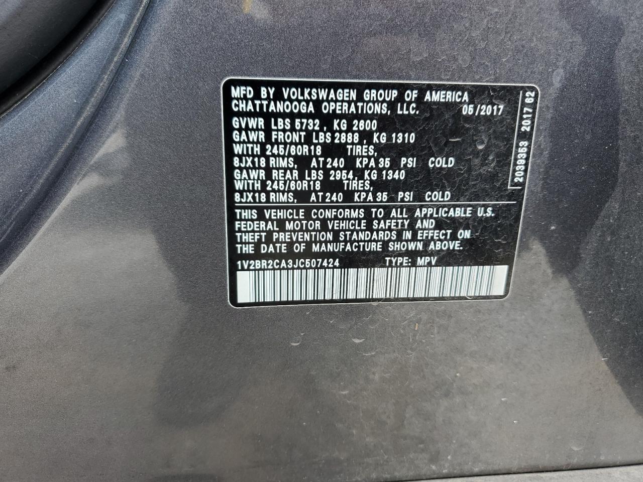 2018 Volkswagen Atlas 1V2BR2CA3JC507424