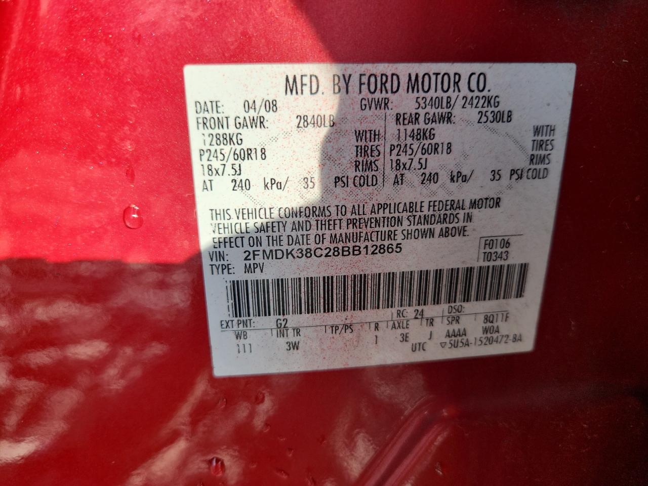 2008 Ford Edge Sel 2FMDK38C28BB12865