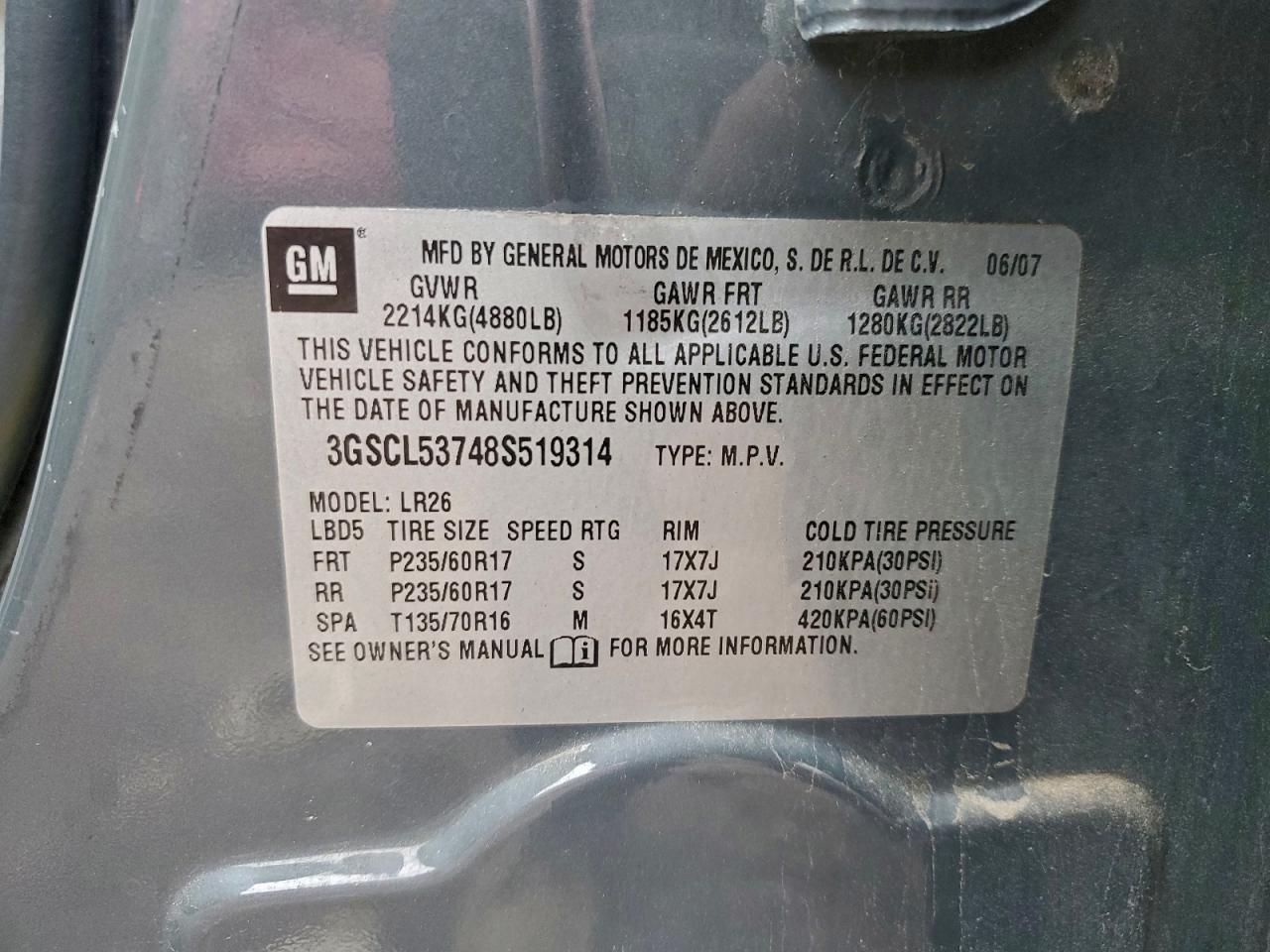 2008 Saturn Vue Xr 3GSCL53748S519314