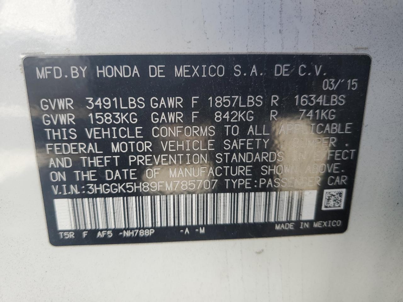 3HGGK5H89FM785707