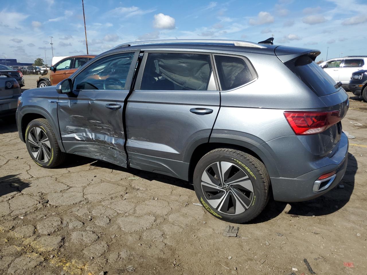 У нас вы можете заказать автомобиль Volkswagen Taos 2024 года выпуска с пробегом 16728 миль, цвет серый, с двигателем 1.5l 4, коробкой передач автоматическая, привод - полный, топливо - бензин . Транспортное средство продается на аукционе и доступно для доставки в Беларусь, местонахождение ТС - Mi - Detroit, Woodhaven, Michigan, США. Состояние - заводится и едет. Vin ТС - 3VVVX7B23RM055983.