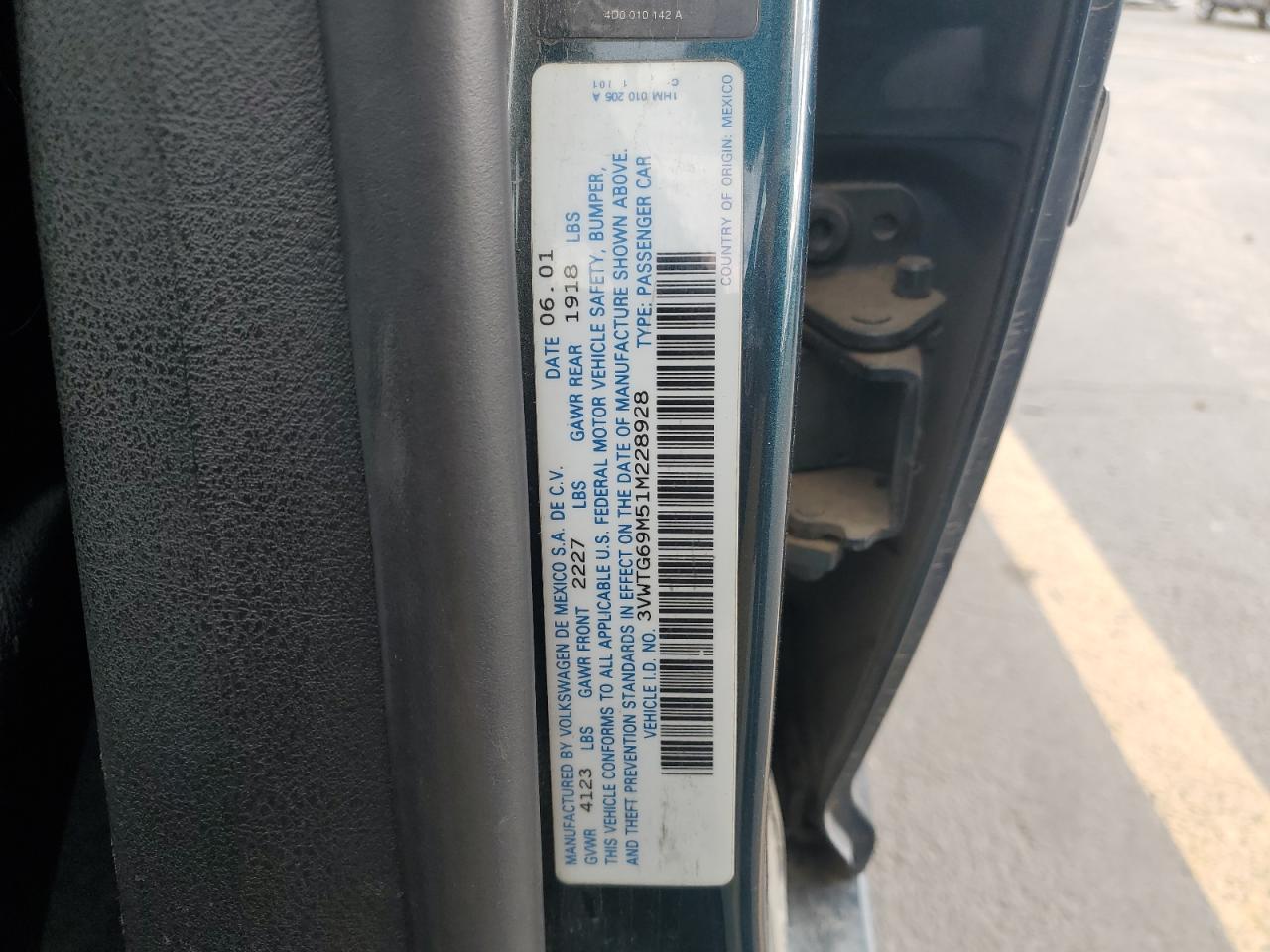 2001 Volkswagen Jetta Glx 3VWTG69M51M228928