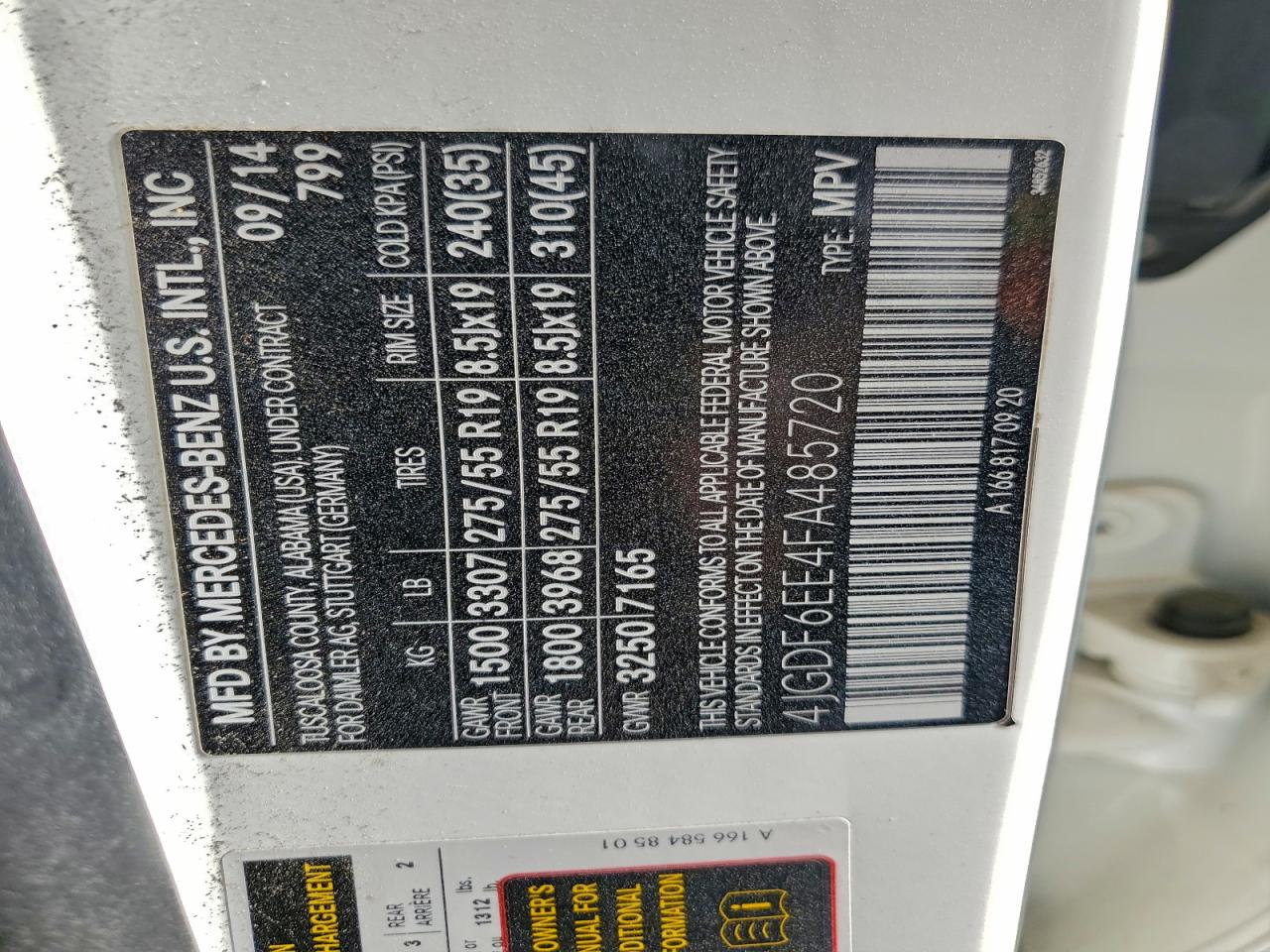 2015 Mercedes-Benz Gl 450 4Matic 4JGDF6EE4FA485720