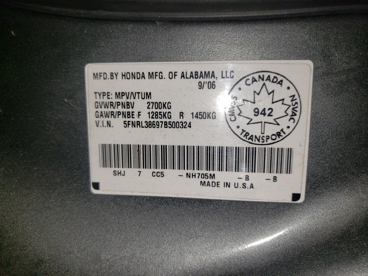 5FNRL38697B500324