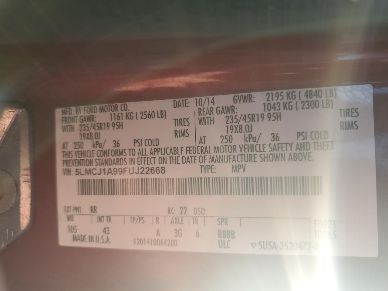 2015 Lincoln Mkc 5LMCJ1A99FUJ22668