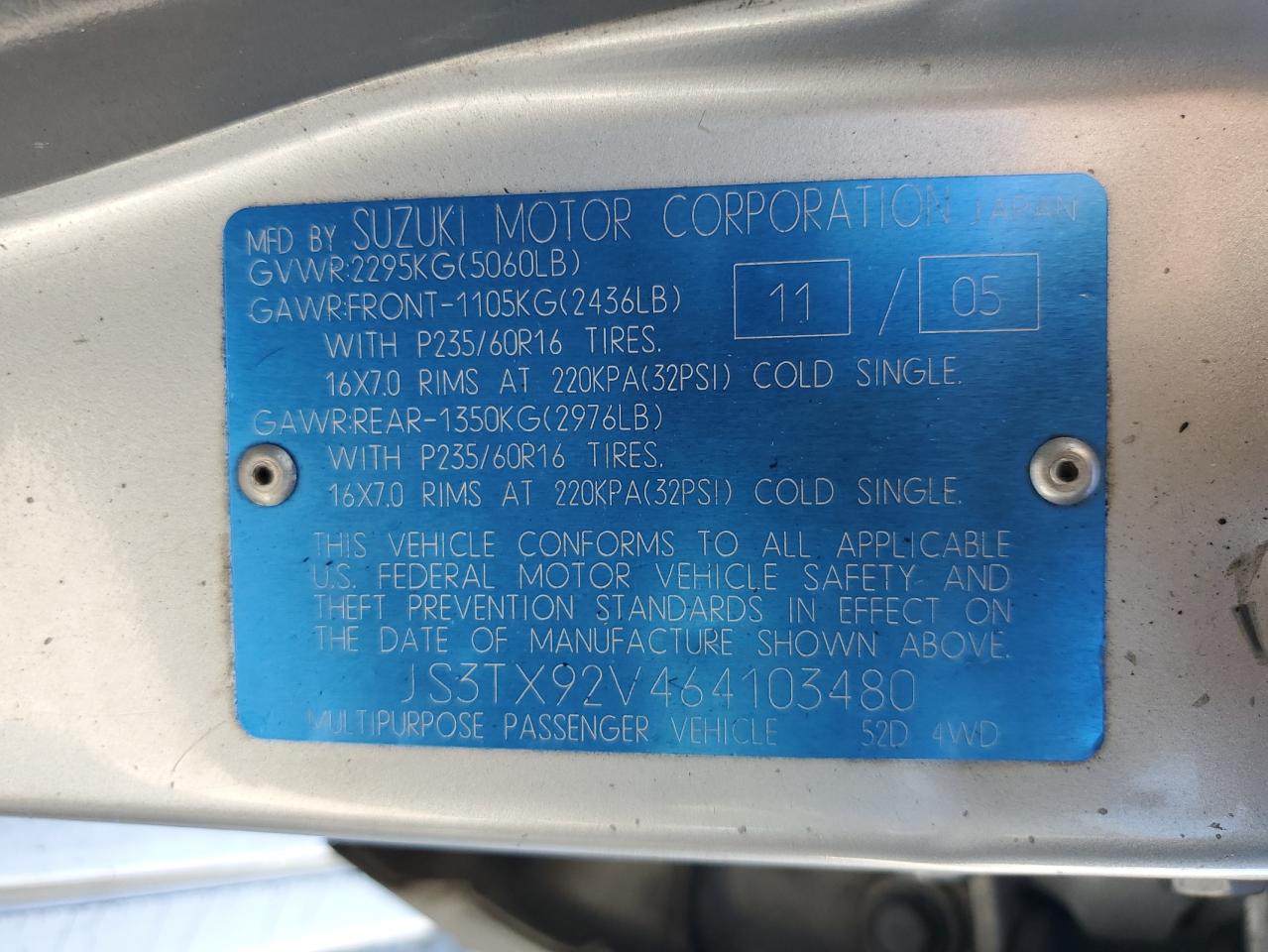 2006 Suzuki Xl7 JS3TX92V464103480