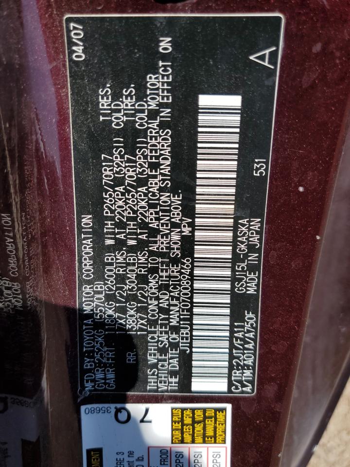 2007 Toyota Fj Cruiser JTEBU11F070089466