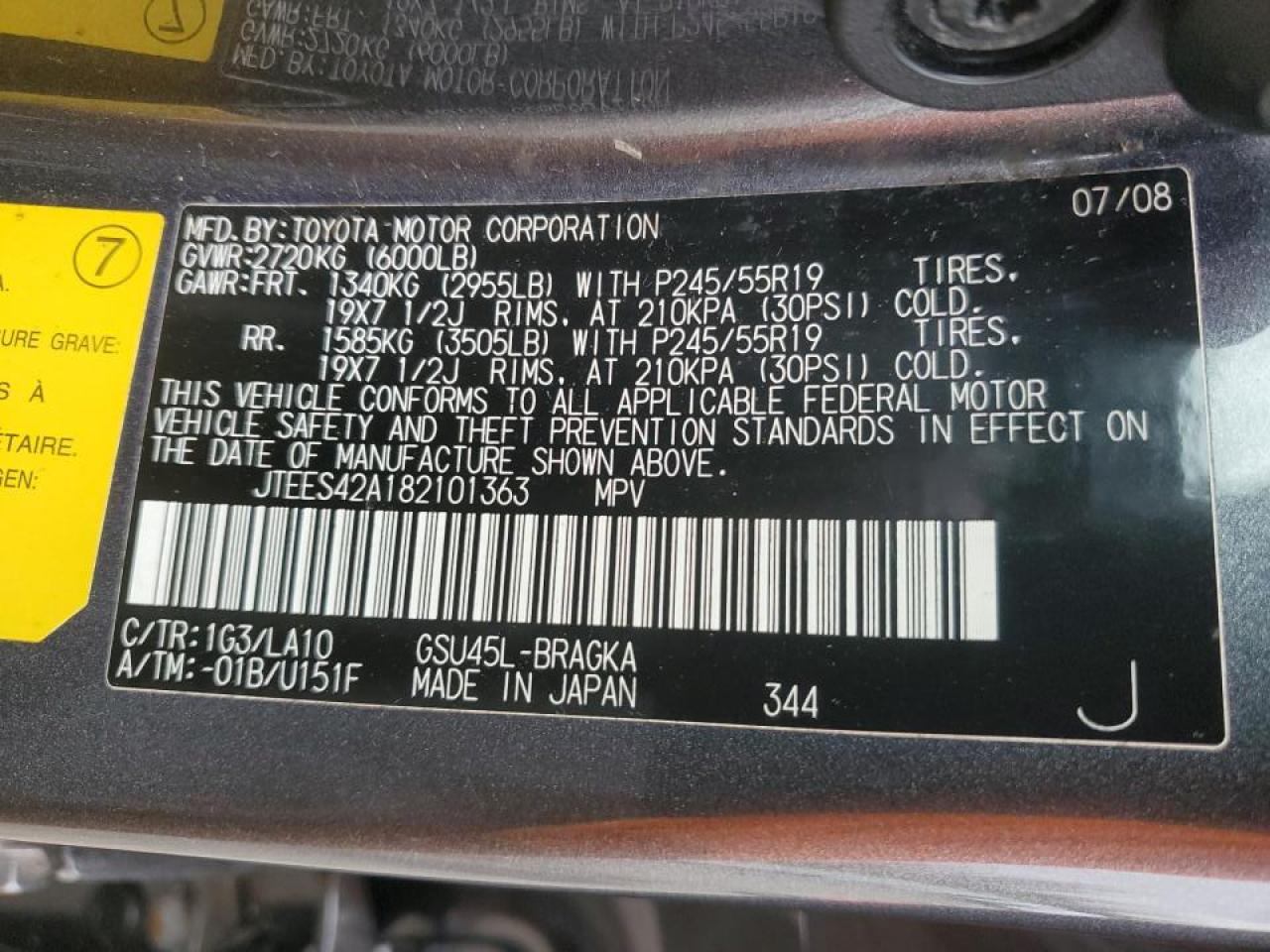 2008 Toyota Highlander Limited JTEES42A182101363