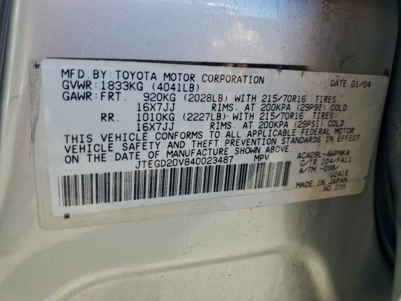2004 Toyota Rav4 JTEGD20V840023487