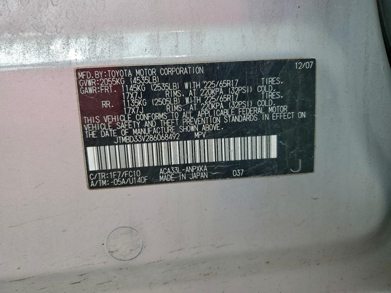 2008 Toyota Rav4 JTMBD33V286068492