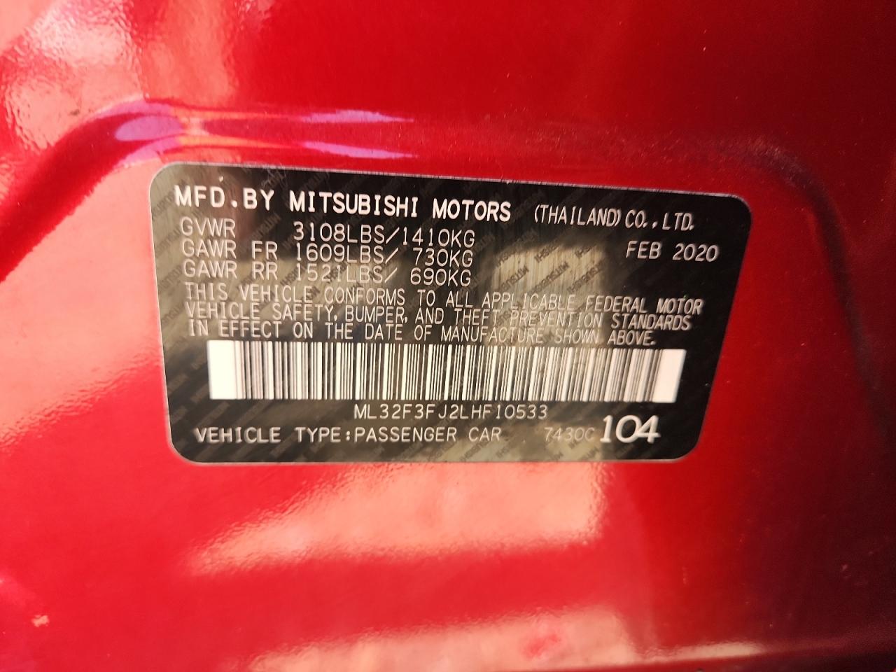 2020 Mitsubishi Mirage G4 Es ML32F3FJ2LHF10533