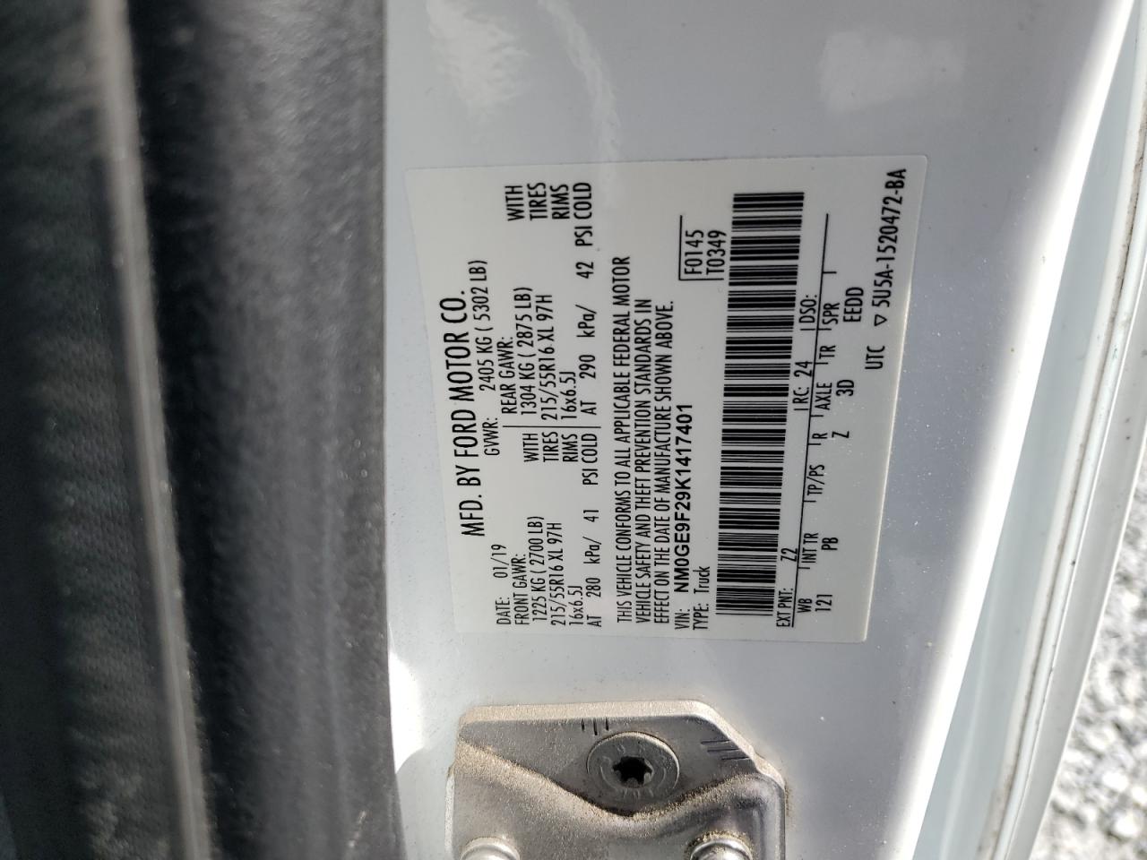 У нас вы можете заказать автомобиль Ford Transit II 2019 года выпуска с пробегом 79723 миль, цвет белый, с двигателем 2.0l 4, коробкой передач автоматическая, привод - передний, топливо - бензин . Транспортное средство продается на аукционе и доступно для доставки в Беларусь, местонахождение ТС - Fl - Tampa South, Riverview, Florida, США. Состояние - двигатель запускается. Vin ТС - NM0GE9F29K1417401.