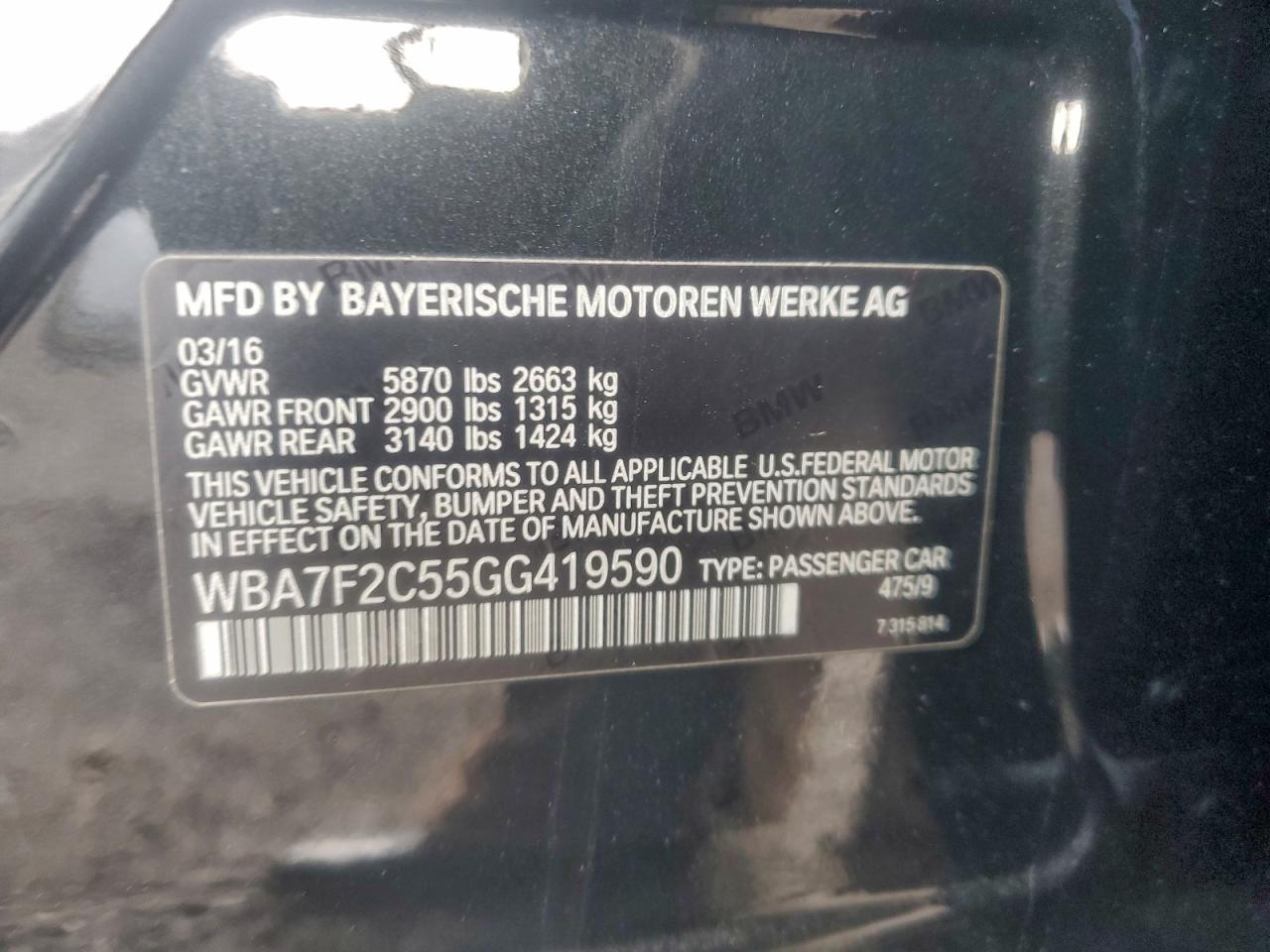2016 BMW 750 Xi WBA7F2C55GG419590