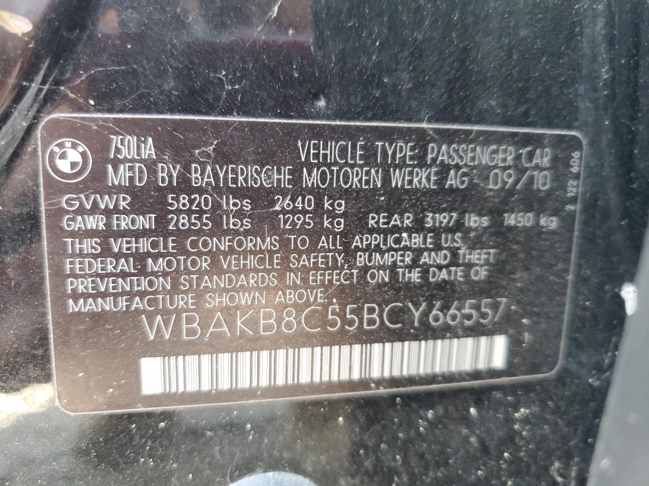 2011 BMW 750 Li WBAKB8C55BCY66557