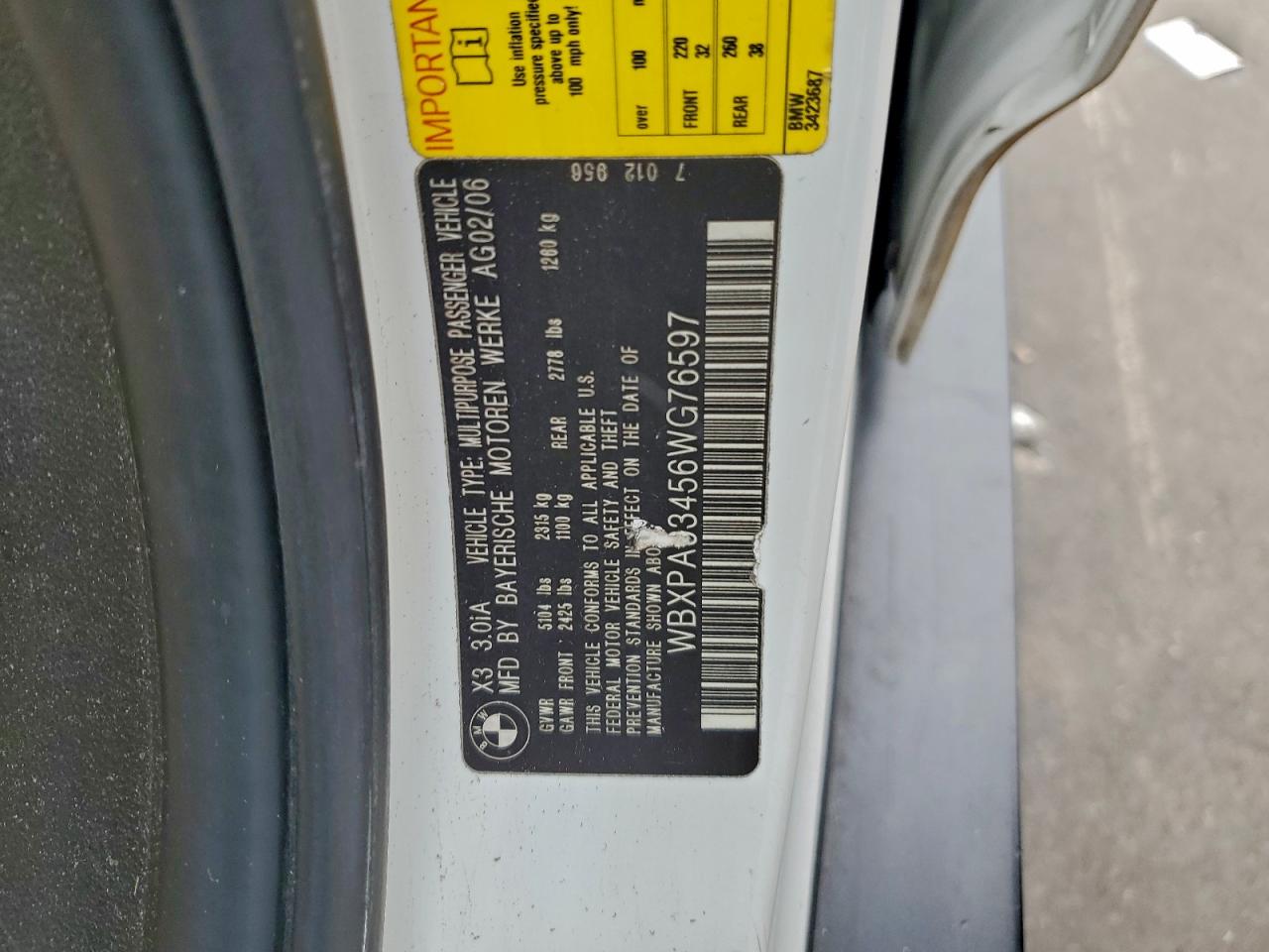 2006 BMW X3 3.0I WBXPA93456WG76597