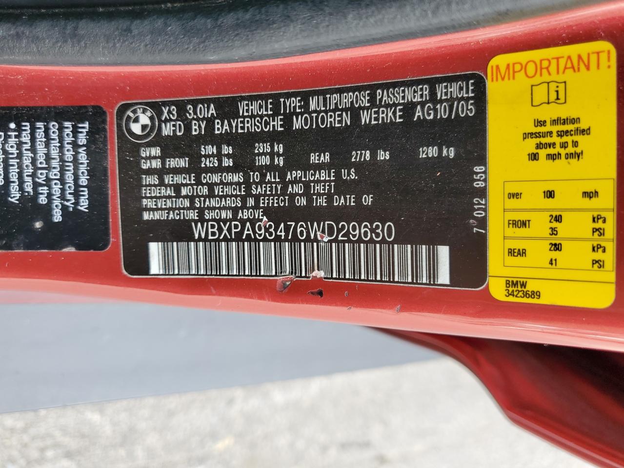 У нас вы можете заказать автомобиль BMW X3 I (E83) 2006 года выпуска с пробегом 137834 миль, цвет красный, с двигателем 3.0l 6, коробкой передач автоматическая, привод - полный, топливо - бензин . Транспортное средство продается на аукционе и доступно для доставки в Беларусь, местонахождение ТС - Pa - Scranton, Duryea, Pennsylvania, США. Состояние - заводится и едет. Vin ТС - WBXPA93476WD29630.