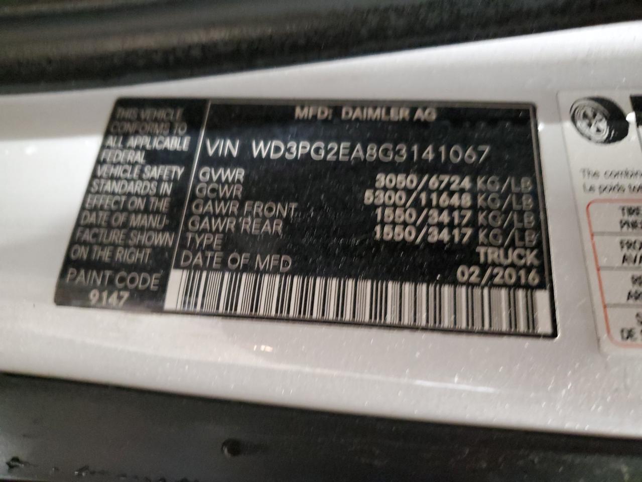 2016 Mercedes-Benz Metris WD3PG2EA8G3141067
