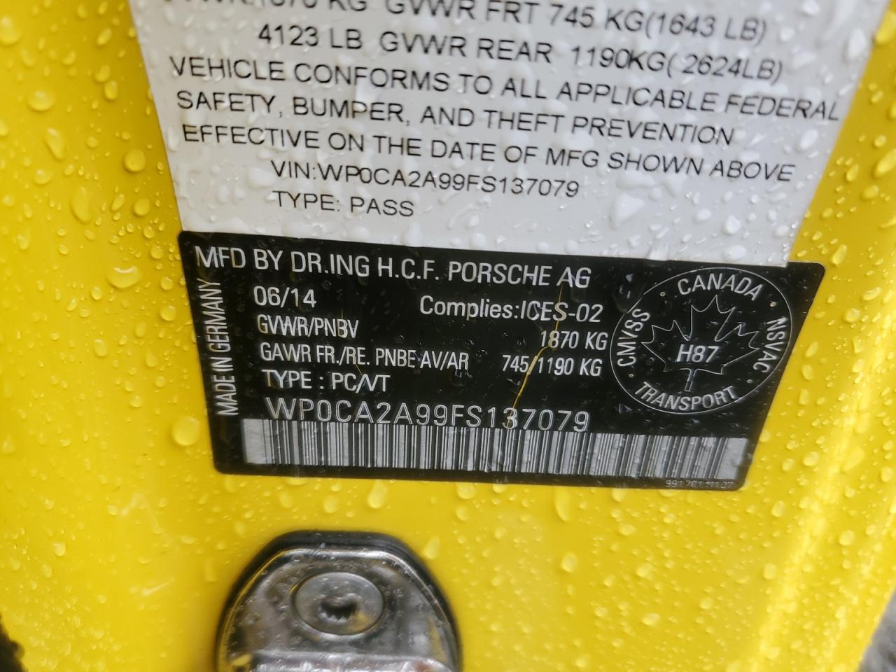 У нас вы можете заказать автомобиль Porsche 911 VII (991) 2015 года выпуска с пробегом 19551 миль, цвет желтый, с двигателем 3.4l 6, коробкой передач автоматическая, привод - задний, топливо - бензин . Транспортное средство продается на аукционе и доступно для доставки в Беларусь, местонахождение ТС - Ny - Newburgh, Marlboro, New York, США. Состояние - заводится и едет. Vin ТС - WP0CA2A99FS137079.