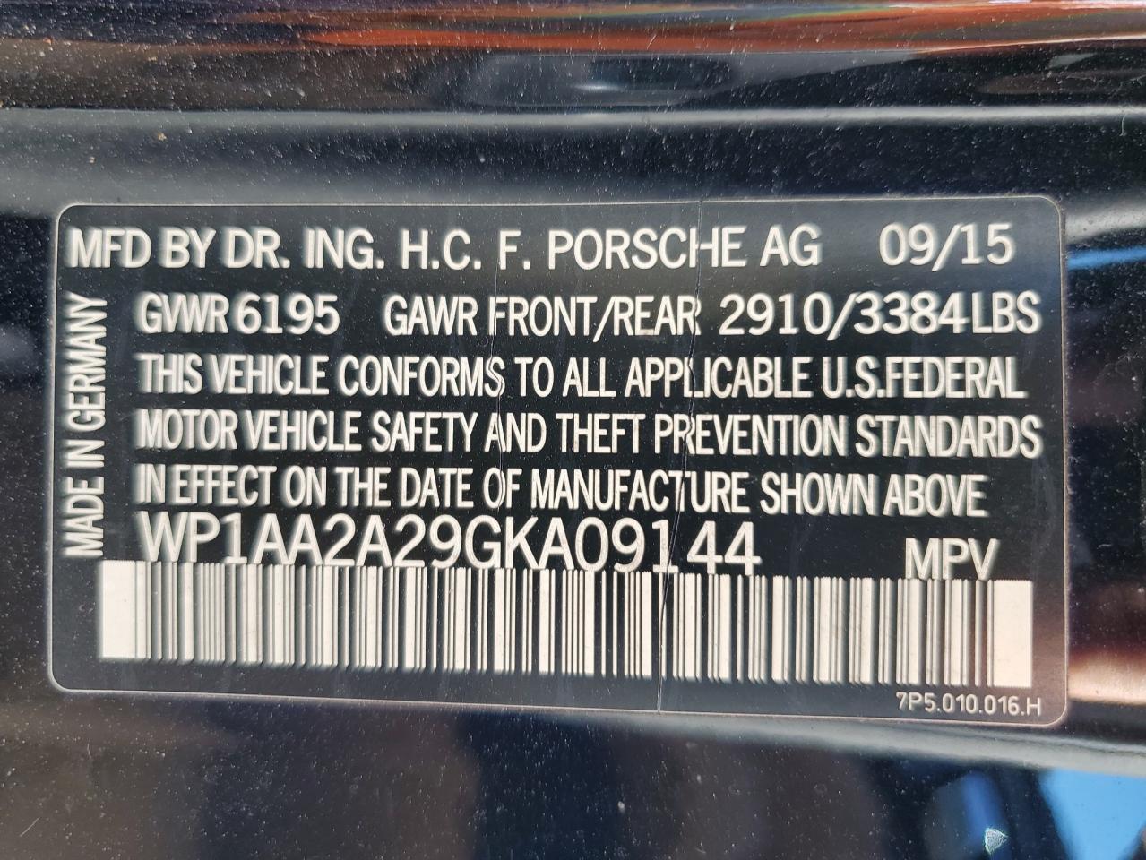 2016 Porsche Cayenne WP1AA2A29GKA09144